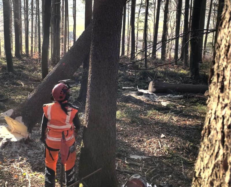 Am Ende des Kurses sind die Teilnehmenden in der Lage motormanuelle Holzerntearbeiten unter einfachen Bedingungen selbständig durchzuführen.
