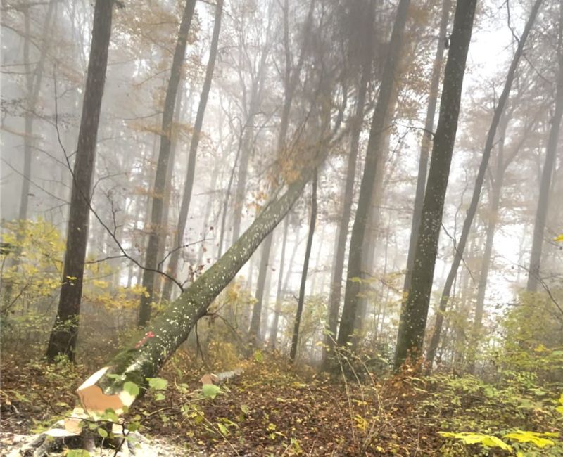 - Fälltechniken (Breite Fallkerbe, tiefe Fallkerbe, Stechschnitt)